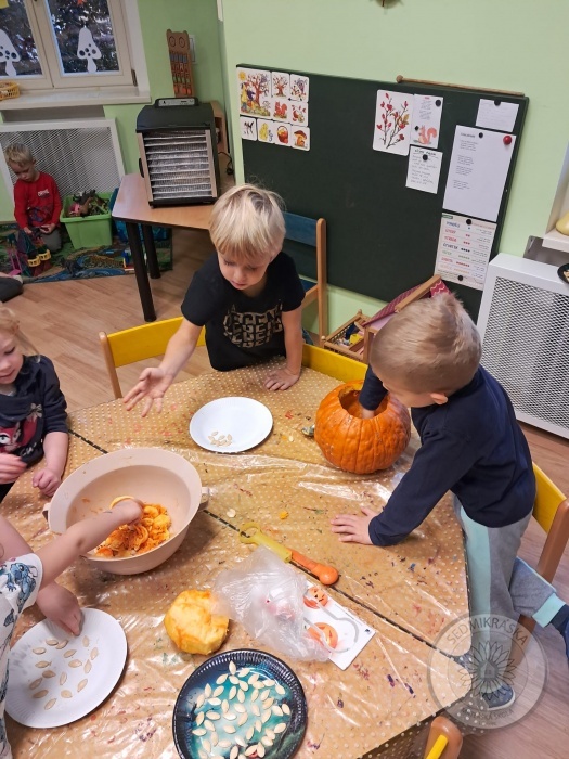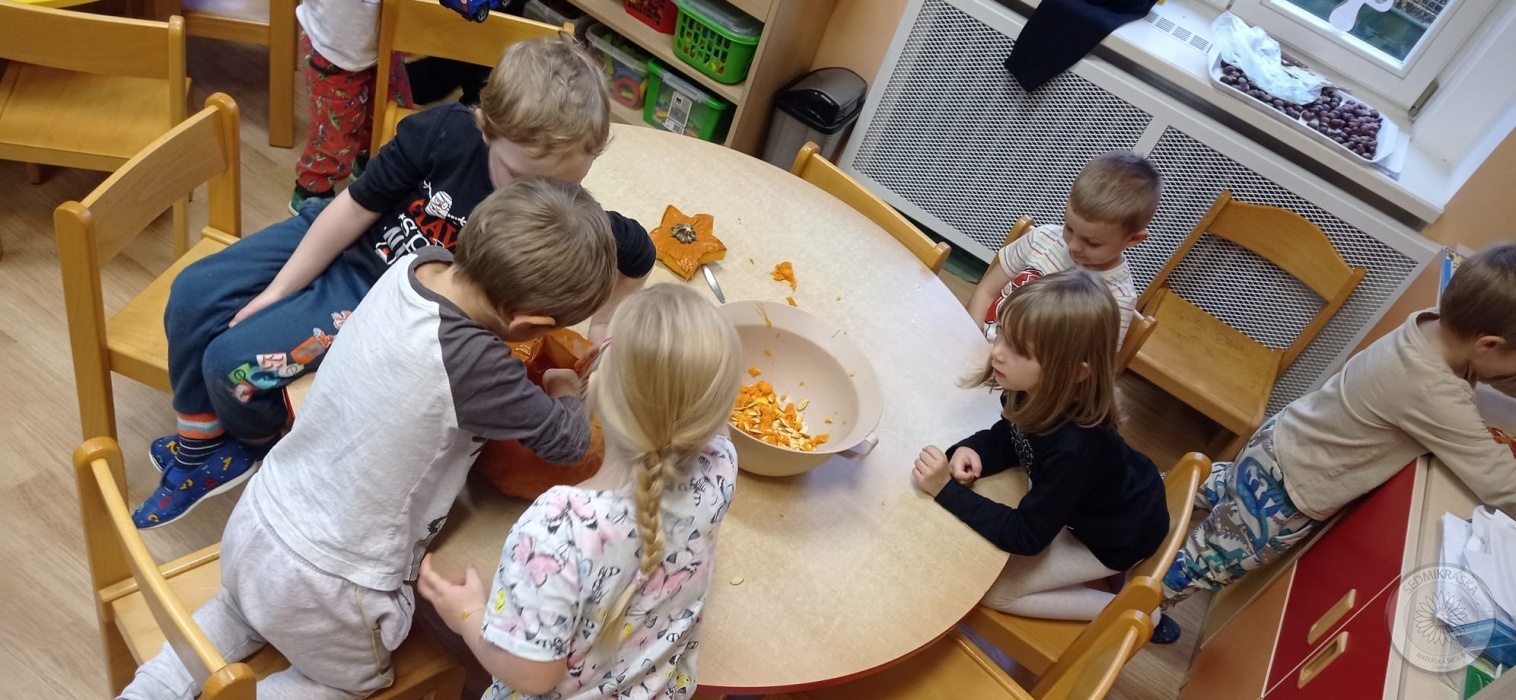 Děti pomáhaly s dlabáním dýně. :-)