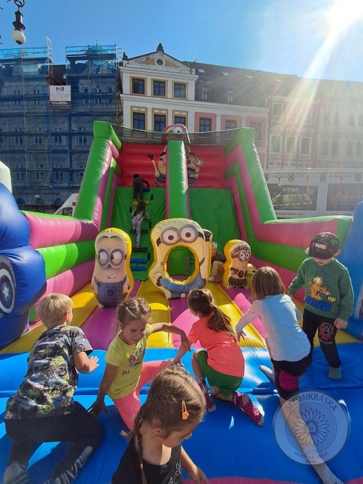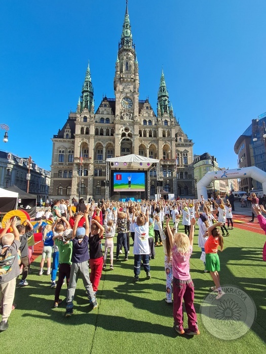 V úterý 9.9. jsme se třídou Medvíďat a s pár staršími dětmi z Koťátek navštívily před libereckou radnicí sportovní program pro školky.