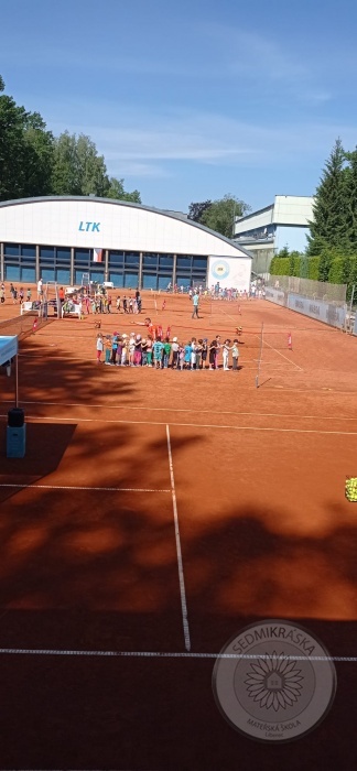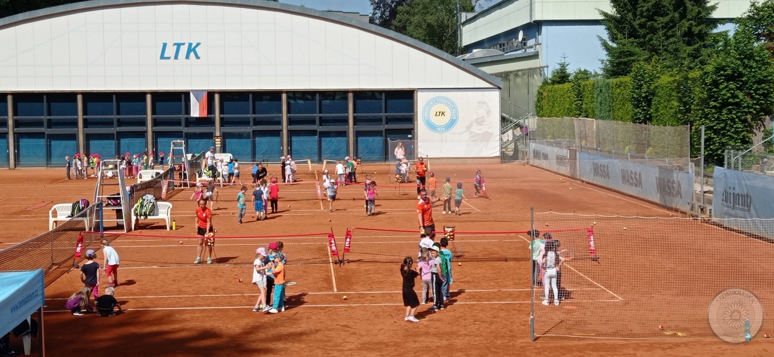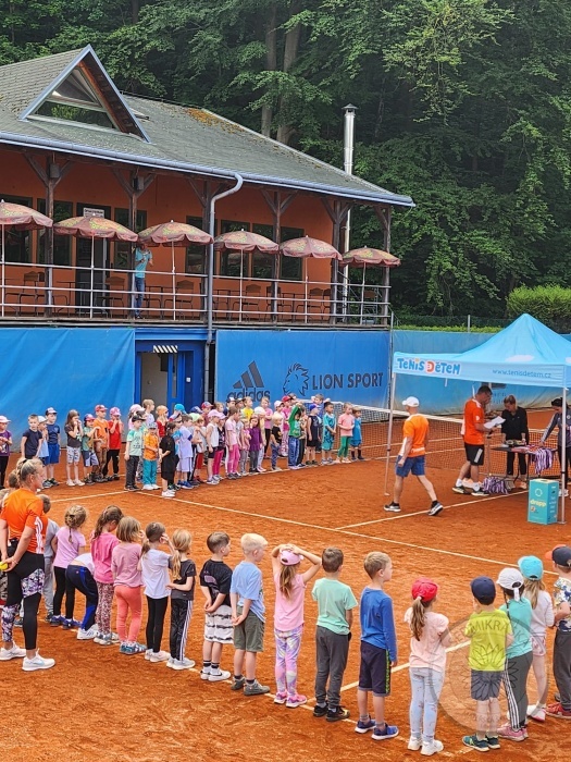 Dnes si děti užily sportovní odpoledne plné tenisu a dalších sportovních aktivit (opičí dráhy, hry s míčem..)